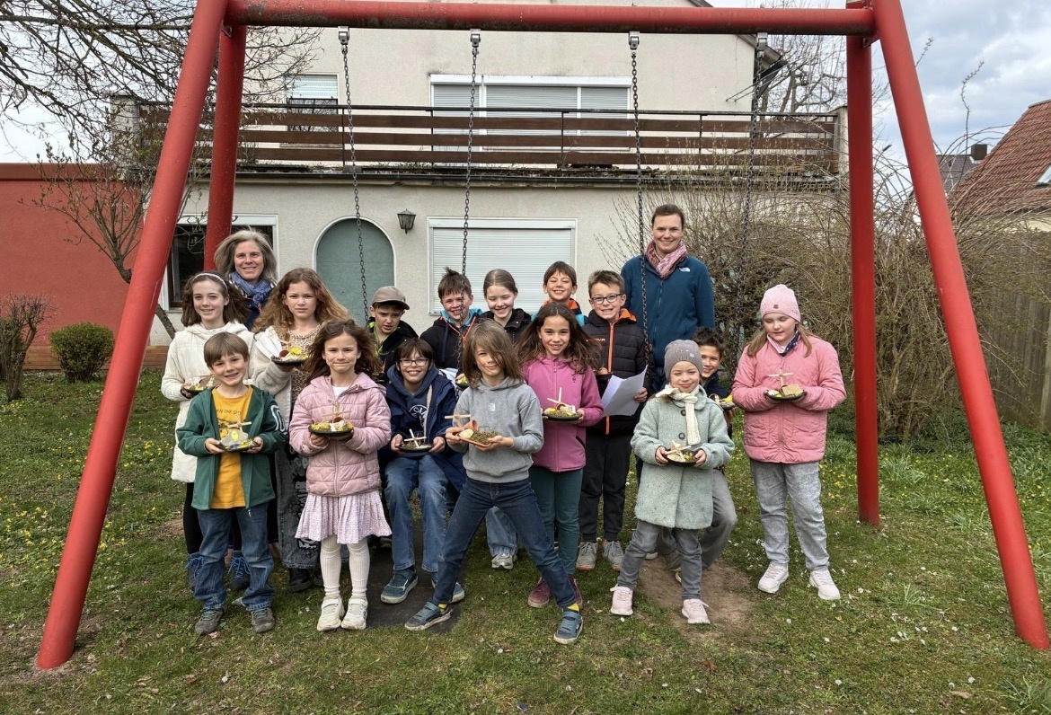 Auch die KjG Geldersheim beteiligte sich aktiv: Sie nutzte den Kinderkreuzweg, um diesen gemeinsam in der Gruppe mit insgesamt 15 Kindern zu begehen. Im Anschluss wurde im Schützengarten aus den einzelnen gesammelten Teilen ein Ostergrab fertiggestellt – mit sehr gelungenen und kreativen Ergebnissen.
